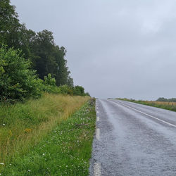 Vers midi j'ai encore perdu mon chemin... sur mon GPS le chemin était bien là, sur le terrain il n'était plus là...alors j'ai cherché un semblant de chemin et j'ai quitté la forêt pour prendre la départementale. Je n'aime pas marcher le long des routes passantes, mais là je n'en pouvais plus de la boue, des ronces, et du flip flap flop. La journée n'est pas très intéressante le long d'une route. Je regarde devant moi, mes pensées divaguent. La pluie caresse mon visage et une chanson vient tourner en boucle dans ma tête:
